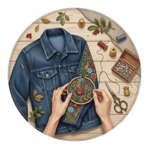 Du kan utforske hvordan ulike broderistiler vil se ut på det skadede området, fra geometriske mønstre til organiske former.